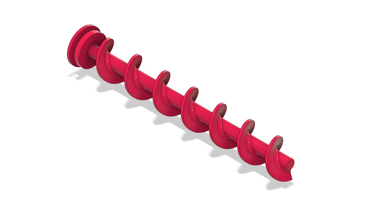A alimentação descerá pelo orifício e será transportada até a saída por meio de um parafuso de Arquimedes. Você sabe como funciona um parafuso de Arquimedes?